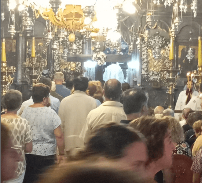 Ο Τίμιος Σταυρός υψώθηκε μέσα στο ναό της Αναστάσεως και σύμφωνα με την Χριστιανική παράδοση, η Αγία Ελένη –που στις μέρες μας τιμούνται με τον γιο της Κωνσταντίνο ως ισαπόστολοι από την Εκκλησία μας – οδηγήθηκε στην αποκάλυψη με θαυμαστό τρόπο.
