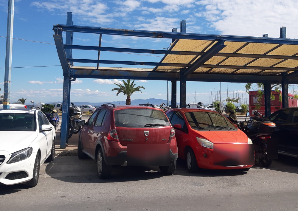 Όταν έγινε η ανάπλαση του πάρκινγκ επί δημαρχίας Γιακαλή με αντιδήμαρχο έργων τον Παντελή Πατερέλλη και αργότερα επί Χατζηκομνηνού ολοκληρώθηκε με τον περιβάλλοντα χώρο της μαρίνας, τα εικονιζόμενα στέγαστρα είχαν προβλεφθεί και μάλιστα για τα δεδομένα αυτής της εποχής οι συγκεκριμένες κατασκευές τότε θεωρήθηκαν προχωρημένες και άρεσαν στους πολίτες.