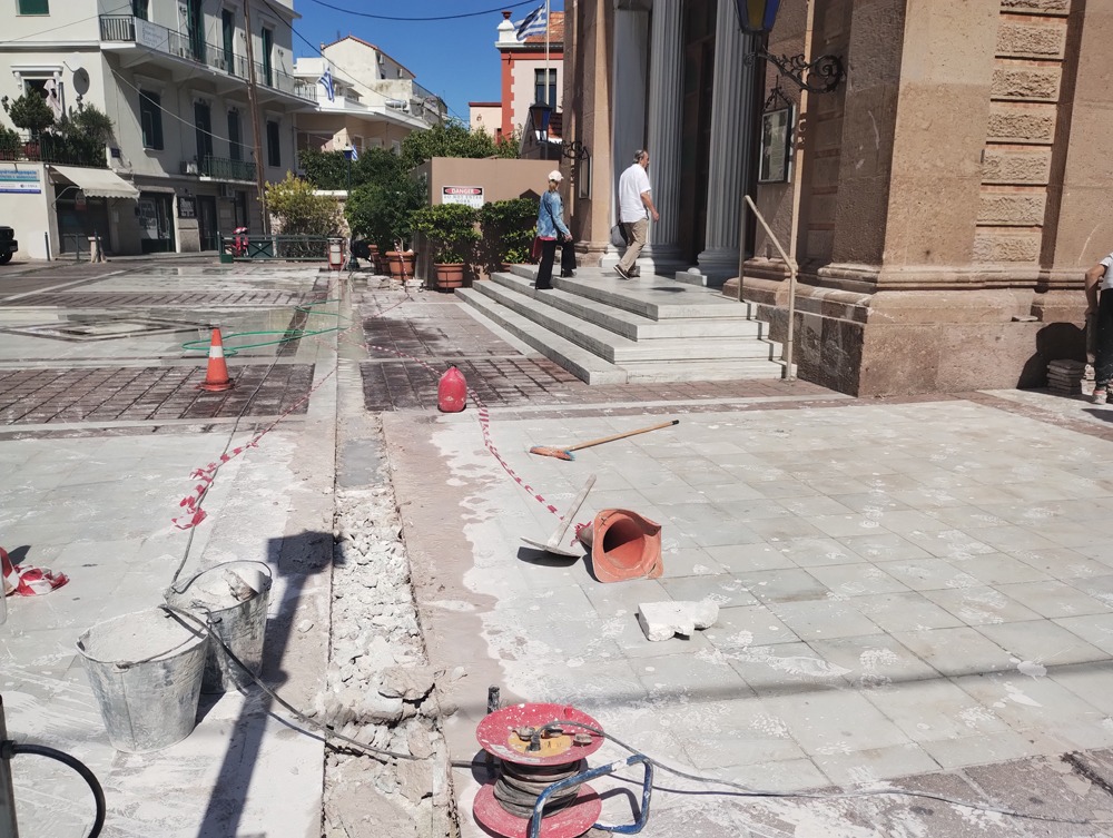 Στην πλατεία του Αγίου Θεράποντα έχουν μεταφερθεί τα έργα της ανακαίνισης του εμβληματικού ναού, τα οποία περιλαμβάνουν και υπογειοποίηση καλωδίων ηλεκτρισμού και προς τούτο ξηλώθηκε τμήμα της πλακόστρωσης για να περάσουν τα καλώδια του ρεύματος