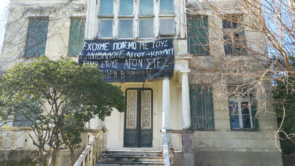 Δεν γνωρίζουμε αν το συγκεκριμένο παλιό νεοκλασικό βρίσκεται υπό κατάληψη από αναρχικούς που έχουν αναρτήσει το πανό (με αφορμή το θάνατο του Βασίλη Δημάκη στις φυλακές) στην εμπρόσθια όψη, γεγονός είναι ότι οι περίοικοι εκφράζουν την ανησυχία τους ότι σε περίπτωση κατάληψης καθώς έχει πολλά ξύλινα μέρη, λόγω της παλιάς κατασκευής, μπορεί να λαμπαδιάσει αν πεταχτεί ένα αναμμένο τσιγάρο. Πρόκειται πράγματι για παλιό κτίριο για το οποίο πληροφορηθήκαμε ότι η ιδιοκτησία ανήκει σε διαφορετικά πρόσωπα και όχι σε ένα-δύο ανθρώπους, αλλά σε περισσότερους.