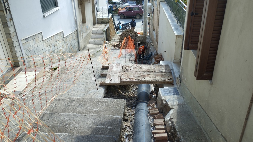 Ούτε για το βιολογικό καθαρισμό της περιόδου του 2000 να έσκαβαν στην οδό Τελεσίδου, το εικονιζόμενο στενό με τα σκαλοπάτια που συνδέει τις οδούς Ζωοδόχου Πηγής και Αεροπόρου Γιανναρέλλη. Κοντεύει να συμπληρωθεί χρόνος από τότε που άνοιξαν τα πρώτα «ορύγματα» έξω από τα σπίτια, με τα οποία δύο φορές έχουμε ασχοληθεί έως τώρα, όμως, βλέπουμε  ότι το έχουν μετατρέψει όλο το στενό σε… κανάλι της Βενετίας σκάβοντάς το από άκρη σε άκρη. Να έχεις έναν «κρατήρα» έξω από το σπίτι σου καθ’ όλη τη διάρκεια του καλοκαιριού για να αποφασίσουν να αλλάξουν τον αγωγό ύδρευσης Φεβρουάριο μήνα!