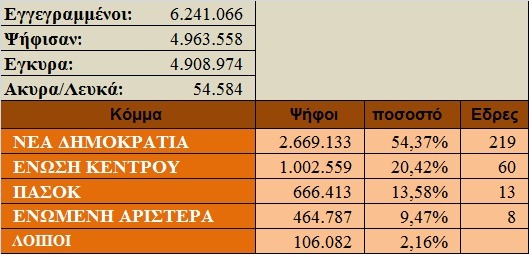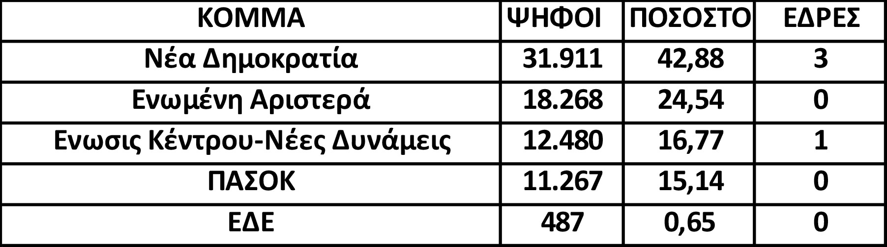 Οι εγγεγραμμένοι ήταν 105.813, ψήφισαν 75.230 και αναλυτικά τα αποτελέσματα: