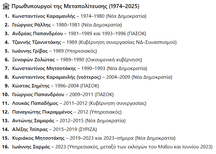 • «ChatGPT», Πρωθυπουργοί της Μεταπολίτευσης.