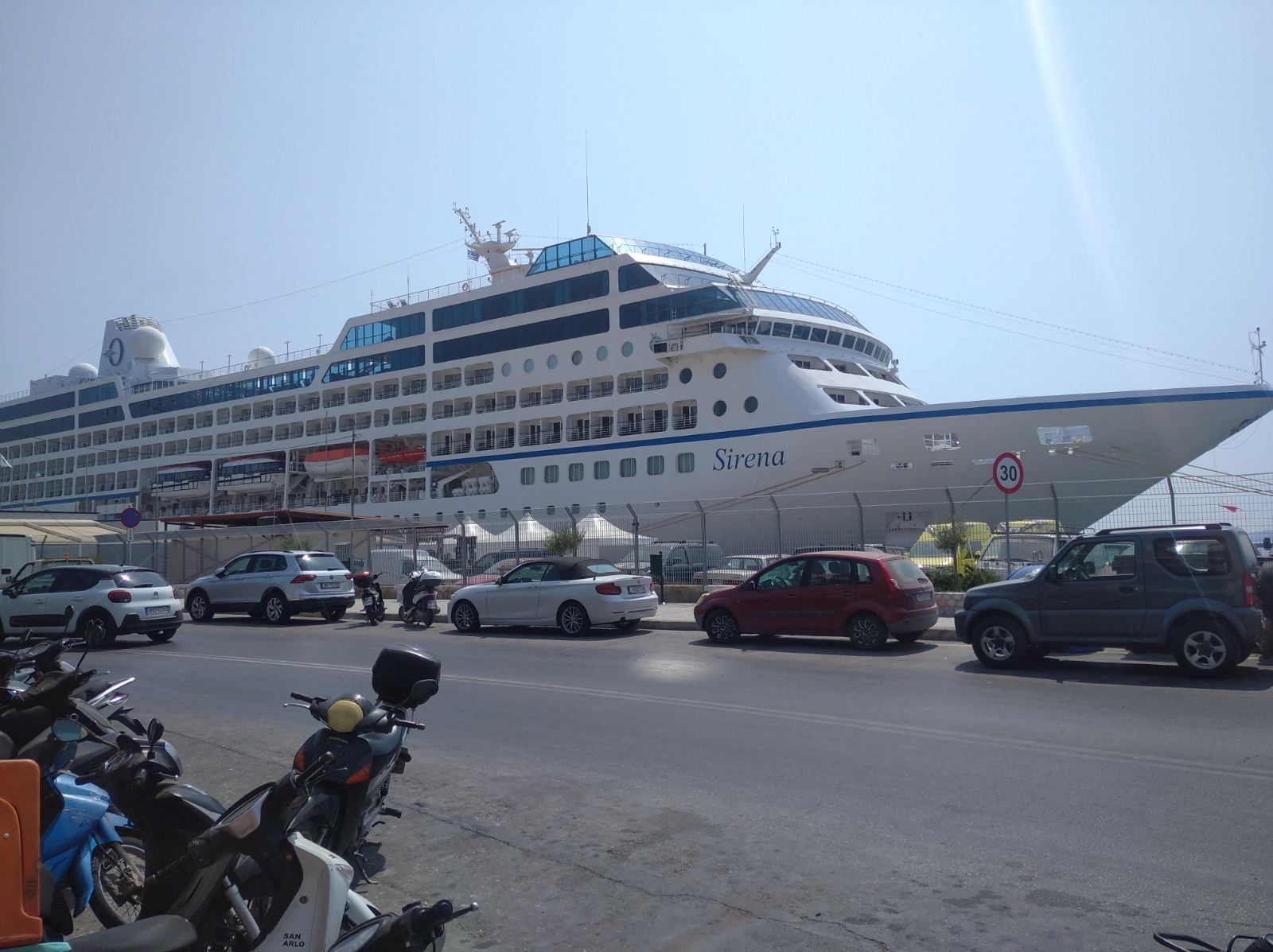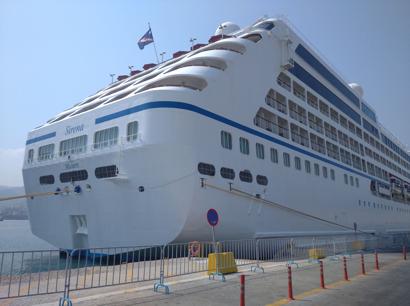 Το μισό λιμάνι έπιασε το τεράστιο και εντυπωσιακό κρουαζιερόπλοιο “Sirena” που έδεσε στην προβλήτα σήμερα το πρωί μεταφέροντας 630 Αμερικάνους, Καναδούς και Άγγλους τουρίστες.