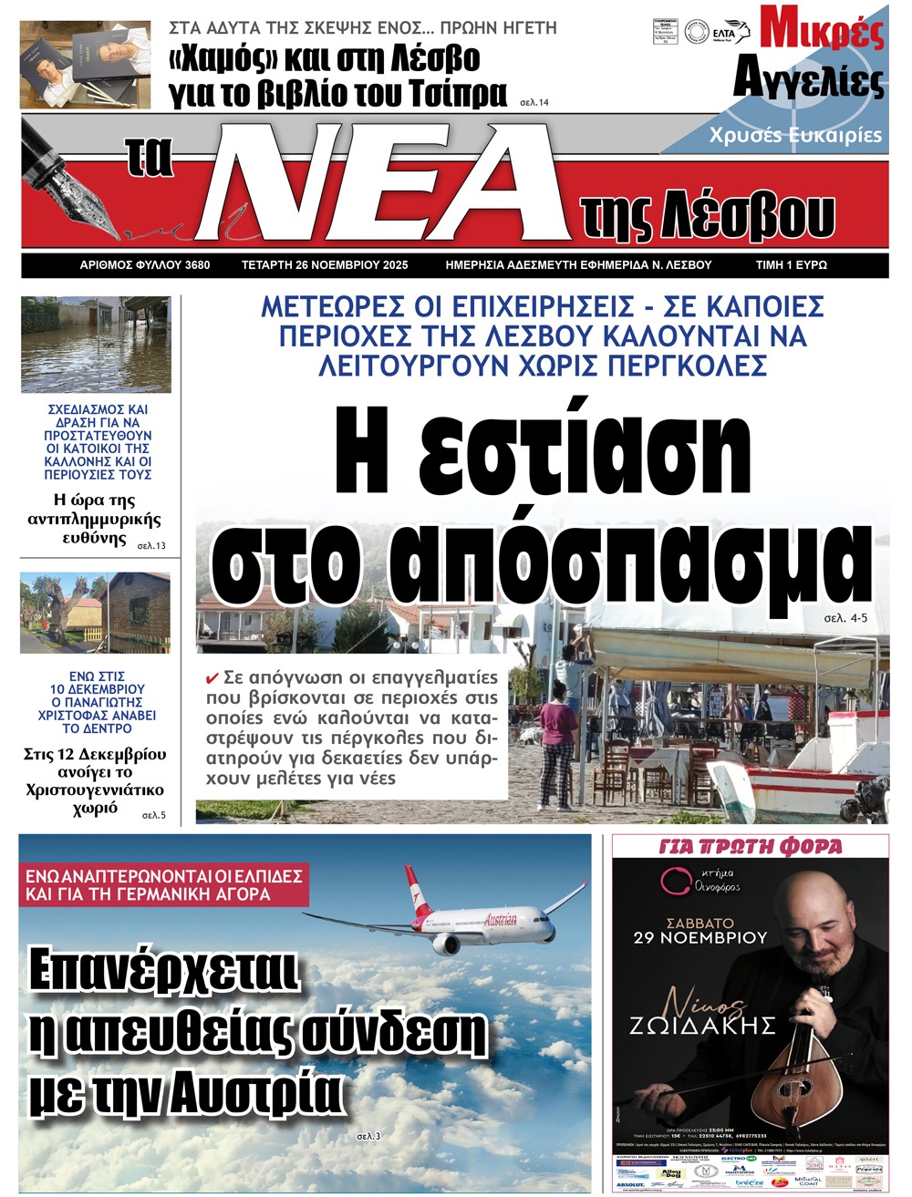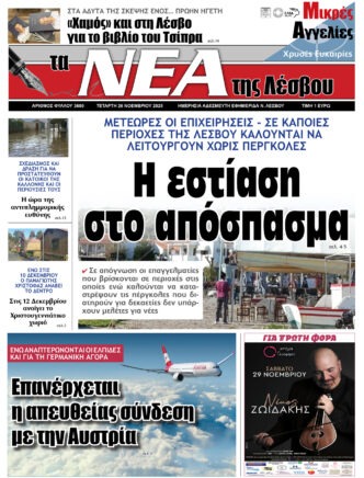 Διαβάστε τη συνέχεια στην έντυπη έκδοση της εφημερίδας «Τα Νέα της Λέσβου»