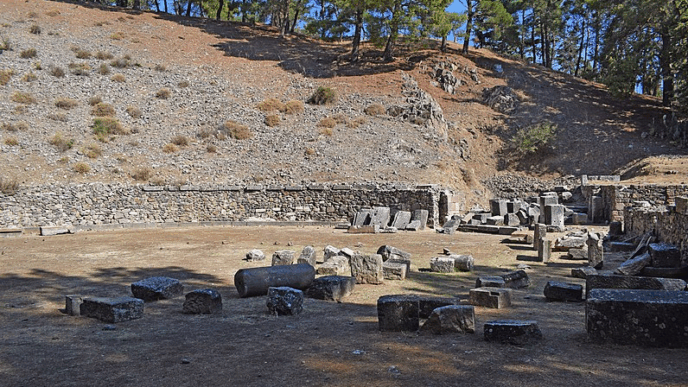 Η ίδια αίσθηση κυριαρχεί και σε έργα, όπως «Η μονομαχία του Αχιλλέα» ή «Ο Θησέας», όπου η αφήγηση παραμένει απλή, δυνατή και συγκινητική. Στα έργα του με θέματα από το δωδεκάθεο, όπως «Η Αθηνά και η Άρτεμις» ή «Η Άρτεμις κυνηγώντας», οι μορφές παρουσιάζονται με τη γνωστή επίπεδη προοπτική και τα καθαρά, φωτεινά χρώματα του Θεόφιλου. Έτσι, η μυθολογία γίνεται οικεία και λαϊκή – μια ιστορία που θα μπορούσε να ειπωθεί στο καφενείο, ανάμεσα σε φίλους.