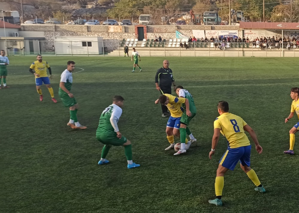 Από ένα βαθμό μοιράστηκαν στο τελικό 1-1 Καλλονή και Αρίων Μήθυμνας σε ένα παιχνίδι που είχε πολλές φάσεις εκατέρωθεν για ακόμα μεγαλύτερο σκορ. To πρώτο μέρος ολοκληρώθηκε ισόπαλο χωρίς τέρματα, όμως στην επανάληψη οι γηπεδούχοι ευτύχησαν να ανοίξουν το σκορ στο 56΄ με τον Γκιάτα. Η απάντηση από πλευράς Αρίωνα Μήθυμνας, που είχε και τρία δοκάρια με τον Πάντα, ήρθε στο 64΄ με τον Γρούβα να κάνει το 1-1, το οποίο διατηρήθηκε έως το φινάλε.
