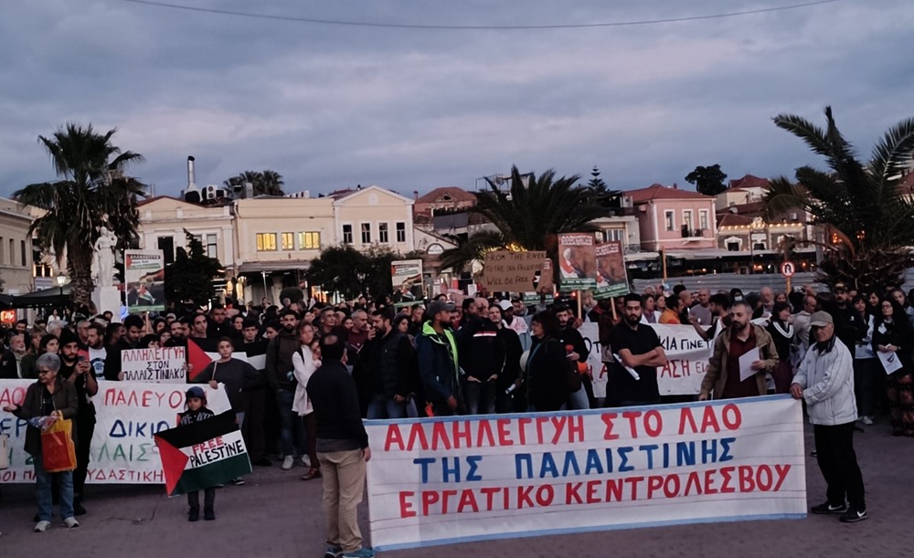 Αντιπολεμική συγκέντρωση-συναυλία διοργανώνει το Εργατικό Κέντρο μεθαύριο Παρασκευή στις 19:30, στην πλατεία Σαπφούς, υπογραμμίζοντας ότι «το κράτος – τρομοκράτης Ισραήλ κλιμακώνει την ανελέητη σφαγή σε βάρος των λαών της Μ. Ανατολής εξαπολύοντας χερσαία εισβολή και στο Λίβανο.