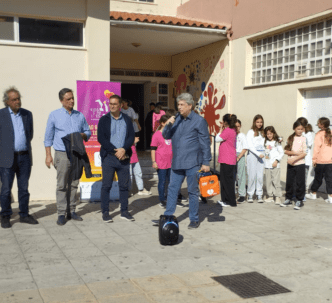 Αυτή τη φορά τη σωτήρια συσκευή συνολικής αξίας 980 ευρώ προσέφερε η οργάνωση Kids Save Lives, με τη χορηγία της Attica ενώ παρέστησαν ο Αντιπεριφερειάρχης Κώστας Αρώνης ο οποίος σε δηλώσεις του τόνισε τη σπουδαιότητα αυτών των ενεργειών αλλά και την προσπάθεια της Περιφέρειας προς την ίδια κατεύθυνση καθώς και ο Αντιδήμαρχος Παιδείας του Δήμο Μυτιλήνης Ελευθέριος Κοτσώνης καθώς ο διευθυντής Πρωτοβάθμιας Εκπαίδευσης, Δημήτρης Βούλγαρης και παρακολούθησαν την εκπαίδευση που ακολούθησε από εξειδικευμένους διασώστες ενω εχει συμμετοχή και το σχολείο σε προγράμματα ΚΑΡΠΑ.