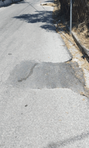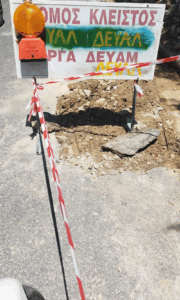 . Εδώ και 2 χρόνια ο πλαστικός σωλήνας που περνά κάτω από τον δρόμο και μεταφέρει το νερό από την δεξαμενή του χωριού στις επιχειρήσεις της περιοχής παρουσιάζει ζημιές, με συνέπεια το βασικό αγαθό να χάνεται, ενώ την ίδια ώρα το οδόστρωμα είναι χιλιομπαλωμένο από τις εργασίες των συνεργείων.