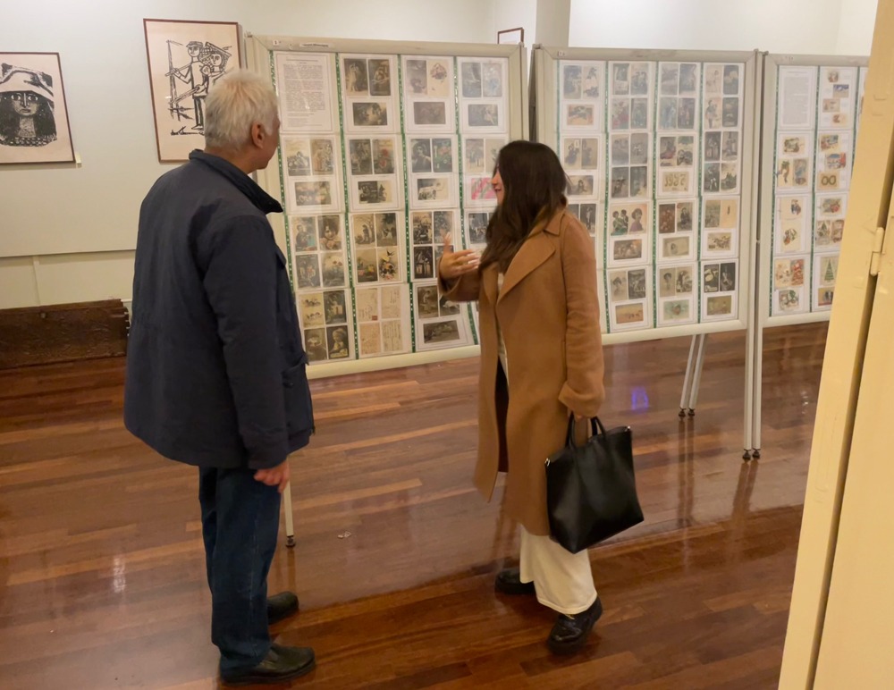 Η δημοσιογράφος της εφημερίδας μας Στέλλα Μακρυανίδου συζητώντας με τον συλλέκτη αλλά και εκπρόσωπο της Φιλοτελικής Λέσχης Λέσβου, Μιχάλη Βαΐτη