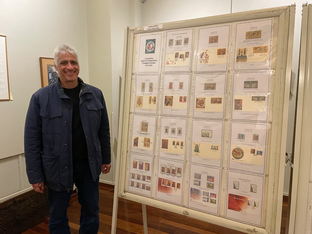 Κατά την επίσκεψή μας, την ξενάγηση ανέλαβε ο καθηγητής Μιχάλης Βαΐτης από το Τμήμα Γεωγραφίας του Πανεπιστημίου Αιγαίου, αλλά και μέλος της Φιλοτελικής Εταιρείας Λέσβου. Με ένα ιδιαίτερο πάθος για το… “χόμπι” της συλλογής γραμματοσήμων, μας εξήγησε  τον ρόλο των συλλεκτών, τη σημασία των συλλογών και τα κριτήρια που καθορίζουν την αξία ενός γραμματοσήμου… αξία που σε ορισμένες περιπτώσεις μπορεί να φτάσει ακόμη και σε εκατομμύρια. Μιλήσαμε επίσης για τον τρόπο με τον οποίο τα γραμματόσημα εξελίχθηκαν μέσα στο χρόνο, καθώς και στο πώς από τις αυστηρές βυζαντινές μορφές των πρώτων χριστουγεννιάτικων γραμματοσήμων η εικονογραφία εξελίχθηκε σε πιο απλές και χαρούμενες παραστάσεις, με Άγιους Βασίληδες, έλατα και σύγχρονα εορταστικά μοτίβα, αλλά φυσικά και στο γεγονός πως τόσο τα γραμματόσημα όσο και οι ευχητήριες κάρτες αποτελούν μέσο επικοινωνίας αλλά και αντικείμενα τέχνης