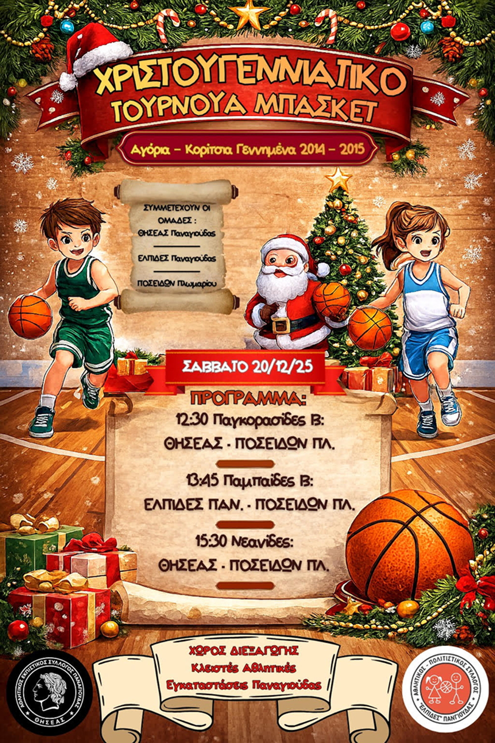 Οι διοικήσεις καλούν γονείς και φίλους του αθλητισμού να στηρίξουν τη διοργάνωση, σε μια γιορτή του μπάσκετ με έντονο χριστουγεννιάτικο χρώμα, η δε είσοδος για τους φιλάθλους θα είναι ελεύθερη.