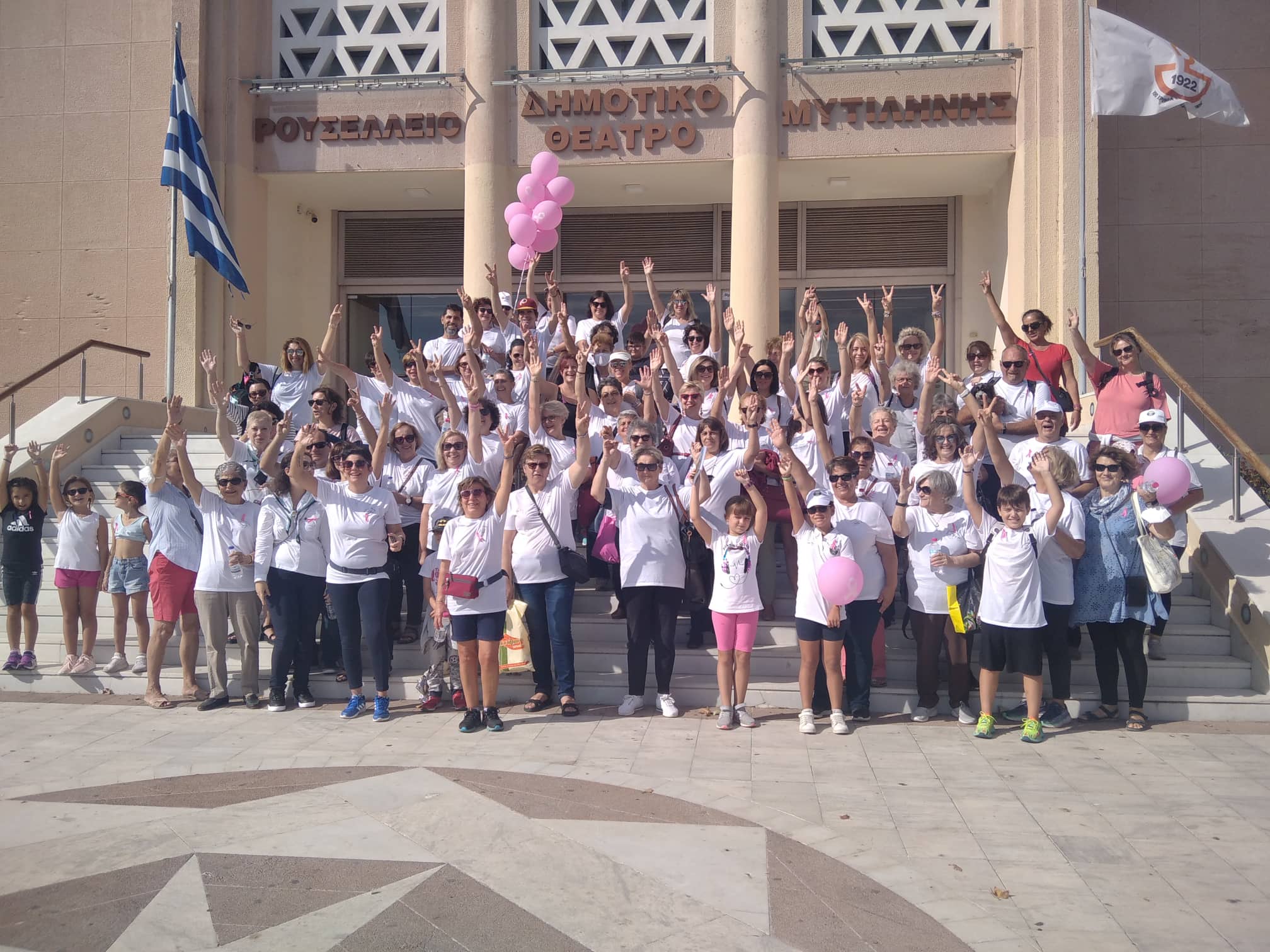 Σκοπός του Συλλόγου Καρκινοπαθών Λέσβου, όπως δήλωσε στα «Νέα της Λέσβου» η πρόεδρός του Ειρήνη Σωτηρχέλλη, είναι να διαδοθεί η σημασία που έχει η πρόληψη και η έγκαιρη διάγνωση για αυτήν την περίπτωση καρκίνου που κυριολεκτικά είναι σωτήριες για πολλές ζωές. «Είναι γιορτή ζωής για μας», είπε η κ. Σωτηρχέλλη, «είναι και μια μνήμη για όσες έφυγαν από τη ζωή, το όραμά μας είναι κάποτε ότι δε θα υπάρχει θάνατος από τον καρκίνο του μαστού». Δεν παρέλειψε να τονίσει και τον μεγάλο αγώνα που δίνουν μαζί με τις ασθενείς οι οικογένειες και γενικά οι άνθρωποι του περιβάλλοντός τους που πραγματικά πάσχουν μαζί τους. Στη συνέχεια μέλη και φίλοι του συλλόγου πραγματοποίησαν σύντομο περίπατο στο κέντρο της πόλης.