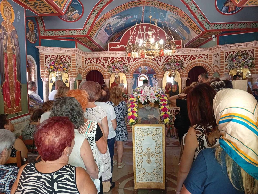 Το Σάββατο το πρωί ιερουργούντος του πρωτοσύγκελου της Μητρόπολης Μυτιλήνης, αρχιμανδρίτη Ιακώβου με την παρουσία πλήθους κόσμου, μέσα και έξω από το ξωκλήσι, τελέστηκε η Θεία Λειτουργία μετ’ αρτοκλασίας, όπου παρέστη ο Δήμαρχος Μυτιλήνης, Παναγιώτης Χριστόφας, συνοδευόμενος από τον Αντιδήμαρχο Πλωμαρίου, Δημήτρη Μαλλιαρό, τον Κοινοτάρχη Παμφίλων Αντώνη Αντωνέλλο και τον πρόεδρο της ΑΔΕΛ Βασίλη Τσαγκάρη, καθώς και ο Υποστράτηγος της ΕΛ.ΑΣ., Γενικός Αστυνομικός Διευθυντής Βορείου Αιγαίου, Μιχάλης Σεβδυνίδης. Οι τοπικοί άρχοντες με την παρουσία τους έδωσαν μια ιδιαίτερη λαμπρότητα στο ξεκίνημα του πανηγυριού στο Αμπελικό στηρίζοντας τον δραστήριο ιερέα του χωριού. Για τον παπά-Στρατή, ένα υπόδειγμα ιεροσύνης και εθελοντισμού, να σημειώσουμε ότι αποδείχθηκε άριστος οικοδεσπότης, προβλέποντας ακόμα και την τοποθέτηση σκίαστρων έξω από το ξωκλήσι, ώστε να κάθονται οι πιστοί προστατευμένοι από τις ακτίνες του ήλιου.