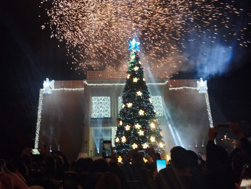 Φαντασμαγορική ήταν η εκδήλωση που διοργάνωσε ο Δήμος Μυτιλήνης σήμερα το απόγευμα για την φωταγώγηση του χριστουγεννιάτικου δέντρου, μπροστά από το Δημοτικό Θέατρο. Η νύχτα έγινε μέρα από τα βεγγαλικά την ώρα που άναβαν ένα – ένα τα λαμπιόνια στο δέντρο, ενώ τα παιδιά δεν έκρυβαν τον ενθουσιασμό τους για το θέαμα.