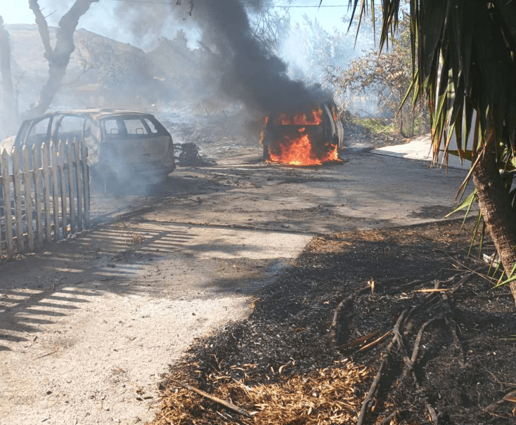 Ολοσχερώς καταστράφηκαν δυο αυτοκίνητα και ένα δίκυκλο που ήταν σταθμευμένα σε συγκρότημα ενοικιαζόμενων δωματίων στην περιοχή της Σκάλας Ερεσού κοντά στον ποταμό. όταν ξέσπασε φωτιά το πιθανότερο στο ένα από τα δύο οχήματα και επεκτάθηκε στο δεύτερο όχημα καθώς οι φλόγες απλώθηκαν στο οικόπεδο (κάηκαν 700 τ.μ.) χωρίς ευτυχώς να επεκταθεί η φωτιά στο συγκρότημα των δωματίων.