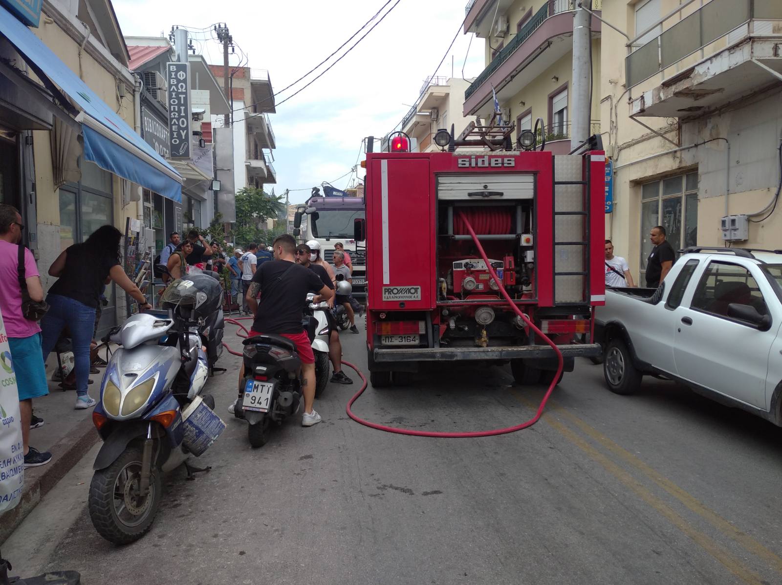 Ο οδηγός ακινητοποίησε το όχημα, επί της οδού Αεροπόρου Γιανναρέλλη, λίγα μέτρα πριν από την πλατεία Αλυσίδας και οι καταστηματάρχες της περιοχής κάλεσαν την Πυροσβεστική που επενέβη αμέσως.