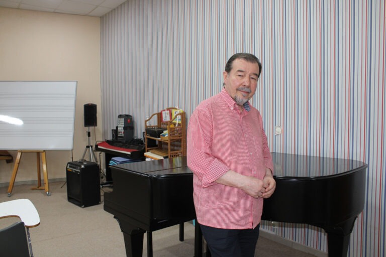 Από αυτή τη συνεργασία προέρχεται και η φωτογραφία που δημοσιεύουμε μπροστά στο πιάνο του Ωδείου του.