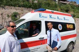 Ο κ. Ανδριώτης, ο κ. Πιπίνης και το ασθενοφόρο του ΕΚΑΒ με το πλήρωμά του