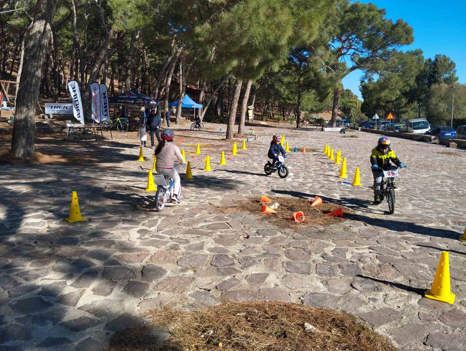 Οι ποδηλατικές δράσεις για τα μικρά παιδιά πραγματοποιήθηκαν μπροστά από το άλσος και συγκεκριμένα σε μίνι πάρκο κυκλοφοριακής αγωγής που είχε διαμορφωθεί για ηλικίες από 5 έως 10 ετών. Εκεί έγιναν παιχνίδια ισορροπίας και δεξιοτεχνιών, μάθημα σωστής και ασφαλούς οδήγησης στην πόλη για παιδιά από 10 έως 15 ετών και εισαγωγή στην αγωνιστική δράση με συμμετοχή στη νέα “μεγάλη” διαδρομή των μικρών φίλων.