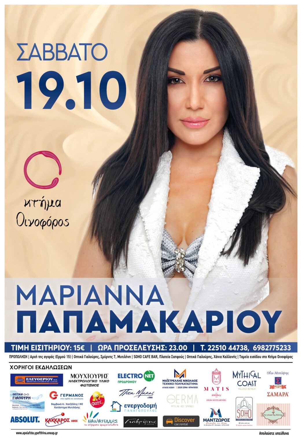 Η Μαριάννα Παπαμακαρίου είναι από τις πιο προικισμένες λαϊκές ερμηνεύτριες των ημερών μας. Μία σύγχρονη γυναίκα με στόφα παλιάς λαϊκής τραγουδίστριας. Με τη μοναδική βελούδινη βραχνή φωνή της, και τη δική της ερμηνευτική προσωπικότητα διασκεδάζει τον κόσμο μοναδικά.