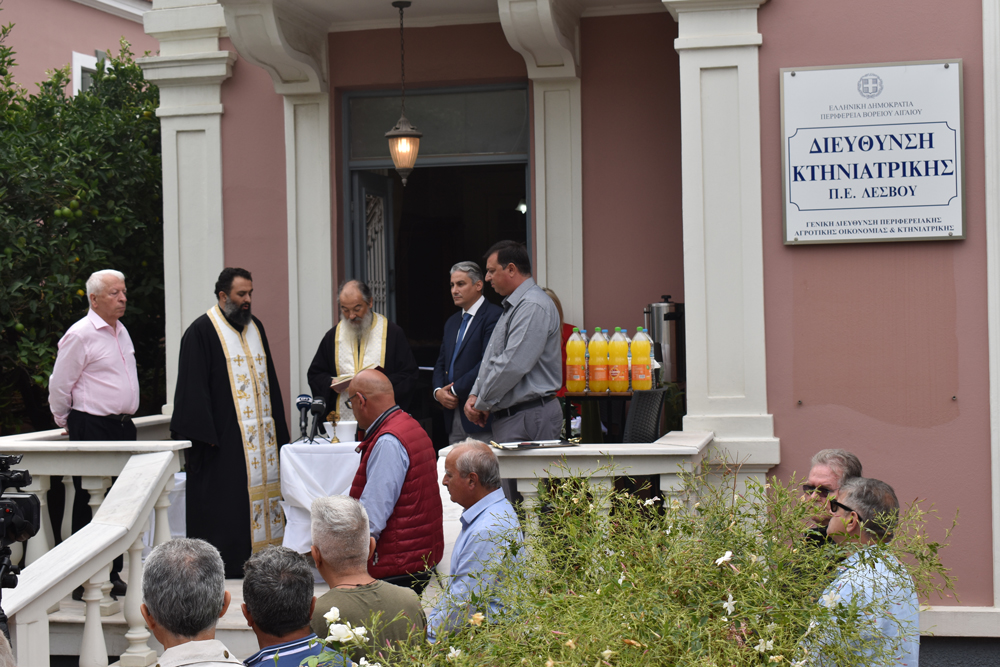 Εγκαινιάστηκαν, χθες, τα νέα γραφεία της Διεύθυνσης Κτηνιατρικής της Περιφέρειας, τα στελέχη της οποίας εγκατέλειψαν το «βομβαρδισμένο» από παραβατικούς Ρομά κτίριο της Παγανής, και στεγάζονται πλέον σε «μέγαρο» και συγκεκριμένα στο νεοκλασικό κτίριο της οικογένειας Τσατραφίλη επί της οδού Καραπαναγιώτη 13.