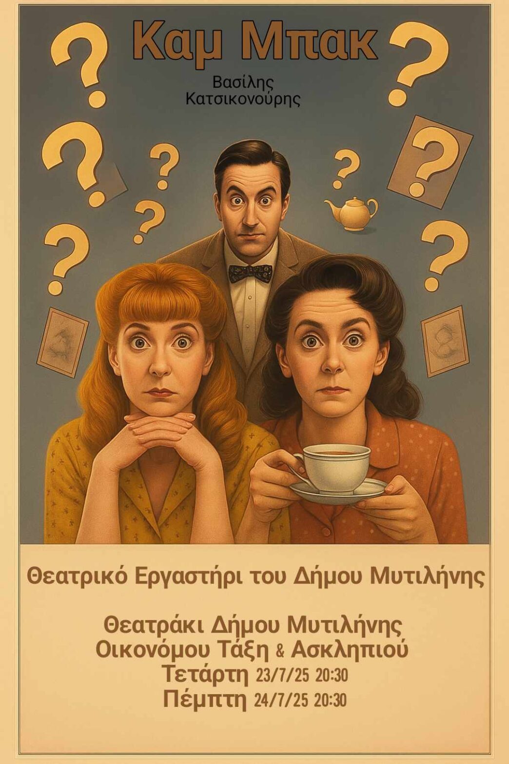 Το Θεατρικό Εργαστήρι του Δήμου Μυτιλήνης παρουσίασε  χθες Πέμπτη και την Τετάρτη στις 23 Ιουλίου την κωμωδία του Βασίλη Κατσικονούρη “Καμ Μπακ”.