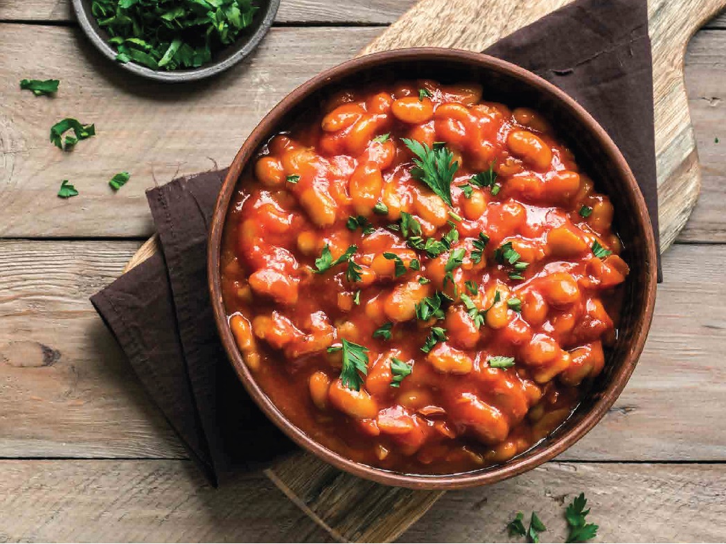 - Όταν το φαγητό μελώσει και τα φασόλια είναι τρυφερά, αφαιρούμε τη γάστρα από το φούρνο και αφήνουμε να «σταθεί» για 10 λεπτά πριν σερβίρουμε.