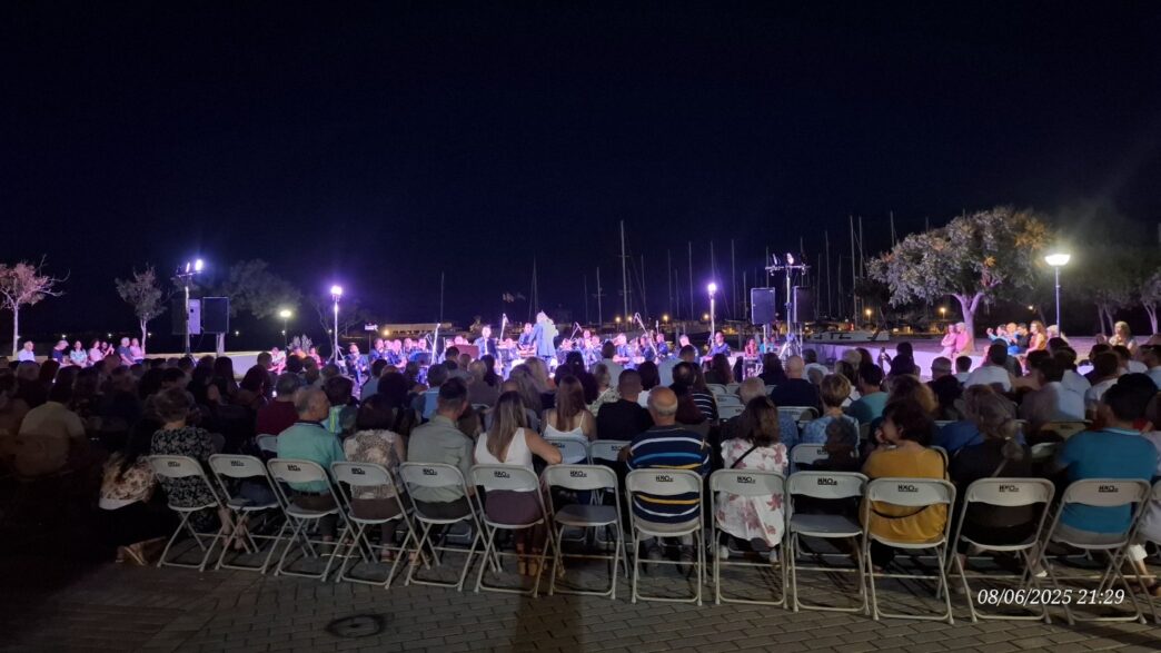 Μάγεψε χθες το βράδυ η μπαντα της αεροπορίας στην πλατεια της Ολυμπιονίκη Μηλένας Κοντού ταξιδεύοντας το κοινό στις νότες του Αιγαίου και σε γνωστές μουσικές του κόσμου.