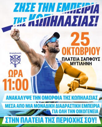 Το Σάββατο 25 Οκτωβρίου, στις 11:00 το πρωί, η Ελληνική Κωπηλατική Ομοσπονδία δίνει τον ρυθμό σε μια μοναδική πανελλήνια δράση: “Η Κωπηλασία στις Πλατείες!». Ο Ναυτικός Όμιλος Μυτιλήνης συμμετέχει δυναμικά και σας περιμένει στην Πλατεία Σαπφούς για να ζήσετε από κοντά την ενέργεια, το πάθος και την ομαδικότητα που κρύβει αυτό το εντυπωσιακό άθλημα.