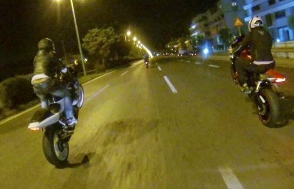 Το ένα δίκυκλο από τον θόρυβο που έβγαζε ο κινητήρας του «προκαλώντας σεισμό» από όπου περνούσε έδειχνε να μην έχει εξάτμιση παρά μόνο το σωλήνα (τούμπο), ενώ το δεύτερο δίκυκλο, σε καλύτερη κατάσταση, έβγαζε έντονο θόρυβο, χαμηλότερης όμως έντασης από το πρώτο, το οποίο ήταν εκκωφαντικό και ανυπόφορο. Για ποιο λόγο, μόνο οι οδηγοί τους ξέρουν, επέλεξαν να κινούνται συνεχώς σε ένα συγκεκριμένο τμήμα.