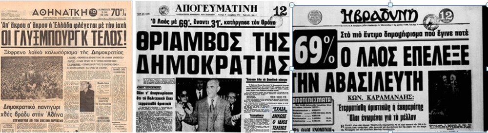 Στις 8 Δεκεμβρίου του 1974, με το δημοψήφισμα, μπήκε λοιπόν και επίσημα στο συρτάρι η βασιλευόμενη δημοκρατία στην χώρα μας που είχε εγκαθιδρυθεί το 1832 με τον Όθωνα.