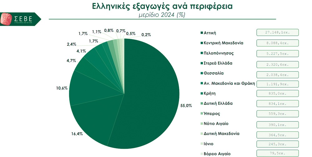 Το καμπανάκι χτύπησε, δεν ήταν της εκκλησίας, αλλά του Συνδέσμου Εξαγωγέων και αφορά τα αρνητικά ρεκόρ της περιφέρειας Βορείου Αιγαίου στις εξαγωγές, την τελευταία πενταετία. Ο ΣΕΒΕ – Σύνδεσμος Εξαγωγέων, μόλις παρουσίασε τη φετινή μελέτη με τίτλο “Χαρτογράφηση της εξαγωγικής δραστηριότητας της Ελλάδας ανά περιφέρεια”, για την περίοδο 2020 – 2024. Δεν πρόκειται για μια απλή στατιστική καταγραφή της πραγματικότητας, αλλά για έναν πολύτιμο οδηγό για τους χαράσσοντες πολιτική και τους αρμόδιους τεχνοκράτες, που κρατούν στα χέρια τους το μέλλον της ελληνικής περιφέρειας, και δη της παραμεθορίου, η οποία αναδεικνύει για άλλη μια φορά τις υψηλές περιφερειακές ανισότητες και τη μεγάλη απόσταση από την επιθυμητή σύγκλιση!