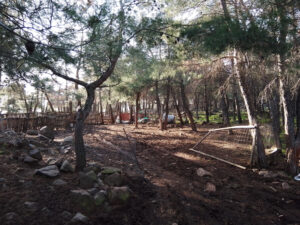 Περίφραξη με πασσάλους και αγροτικό σύρμα μέσα στο δάσος της Φεράνας μαζί με παλέτες