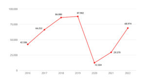 Ο συνολικός αριθμός αφίξεων εξωτερικού κάθε καλοκαίρι