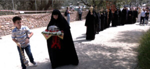 Από την λιτανεία στην κεφαλή της πομπής η ηγουμένη Ταβιθά με την Κάρα του Αγίου