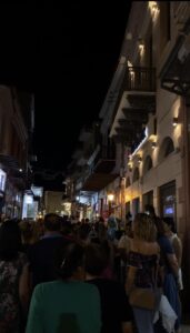 Με πολύ κόσμο απόψε η Λευκή Νύχτα στην αγορά της Μυτιλήνης καθώς κατά εκατοντάδες συρρέουν ντόπιοι και ξένοι για να επισκεφθούν τα μαγαζιά, να δουν τα χορευτικά σχήματα και να γευτούν τα κεράσματα από τους καταστηματάρχες. Ο πρόεδρος του Εμπορικού Συλλόγου Μυτιλήνης Γιάννης Μουτζούρης δήλωσε στην εφημερίδα μας την ικανοποίηση του από την ανταπόκριση, τόσο των συναδέλφων εμπόρων όσο και της κοινωνίας, στις δράσεις του φορέα που εκπροσωπεί εκτιμώντας ότι η φετινή “Λευκή Νύχτα” έχει προσπεράσει σε προσέλευση την περσινή.