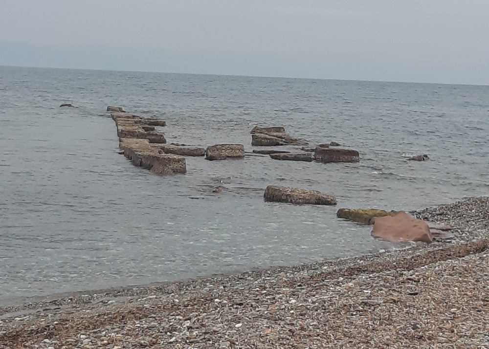 Το σπουδαίο αρχαίο λιμάνι της Μυτιλήνης, στην Επάνω Σκάλα, με τις πέτρες του λιμενοβραχίονα που φαίνονται από το αλιευτικό καταφύγιο στο Καλαμάρη.