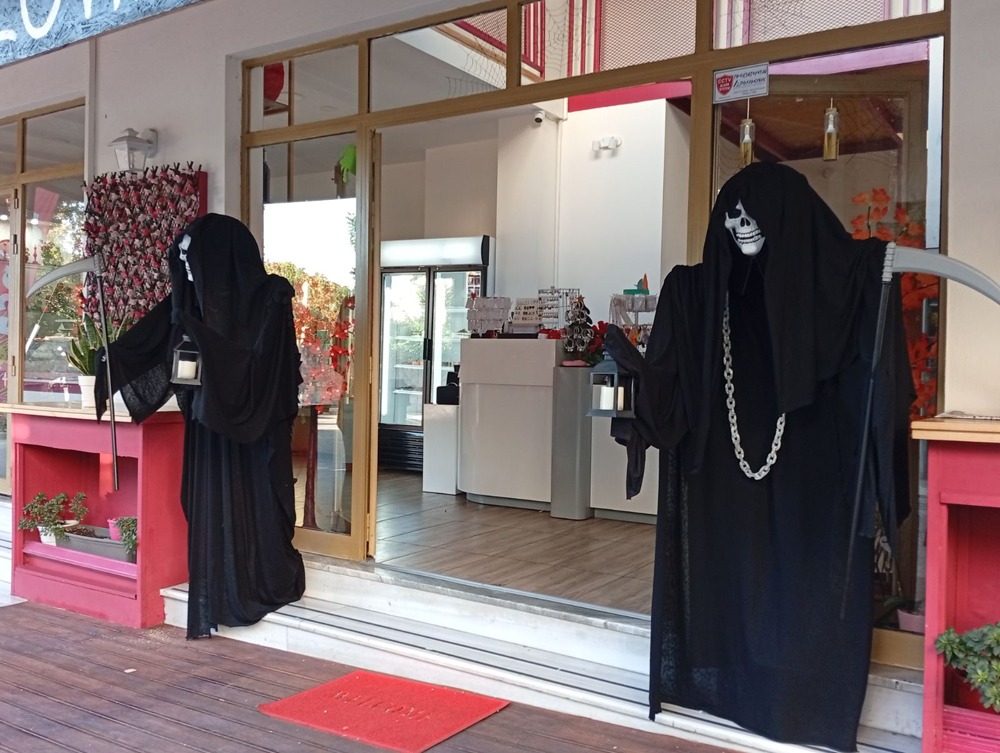 Με έναν ξεχωριστό και, ομολογουμένως, πρωτότυπο τρόπο επέλεξε να τιμήσει το halloween το ζαχαροπλαστείο Πανταζή στην Χρυσομαλλούσα. Ντύθηκε στα χρώματα και τις φιγούρες φέρνοντας με αυτό τον τρόπο και στη Λέσβο μια γιορτή που τιμάται κάθε χρόνο στις 31 Οκτωβρίου σε διάφορες χώρες, έχοντας τις ρίζες της όχι στην Αμερική αλλά στην Αγγλία, επηρεασμένο από τις κέλτικες προϊστορικές γιορτές στην Ευρώπη που μεταγενέστερα συνδέθηκαν με το τέλος της καλλιεργητικής περιόδου και της συγκομιδής και τη μετάβαση στο χειμώνα.