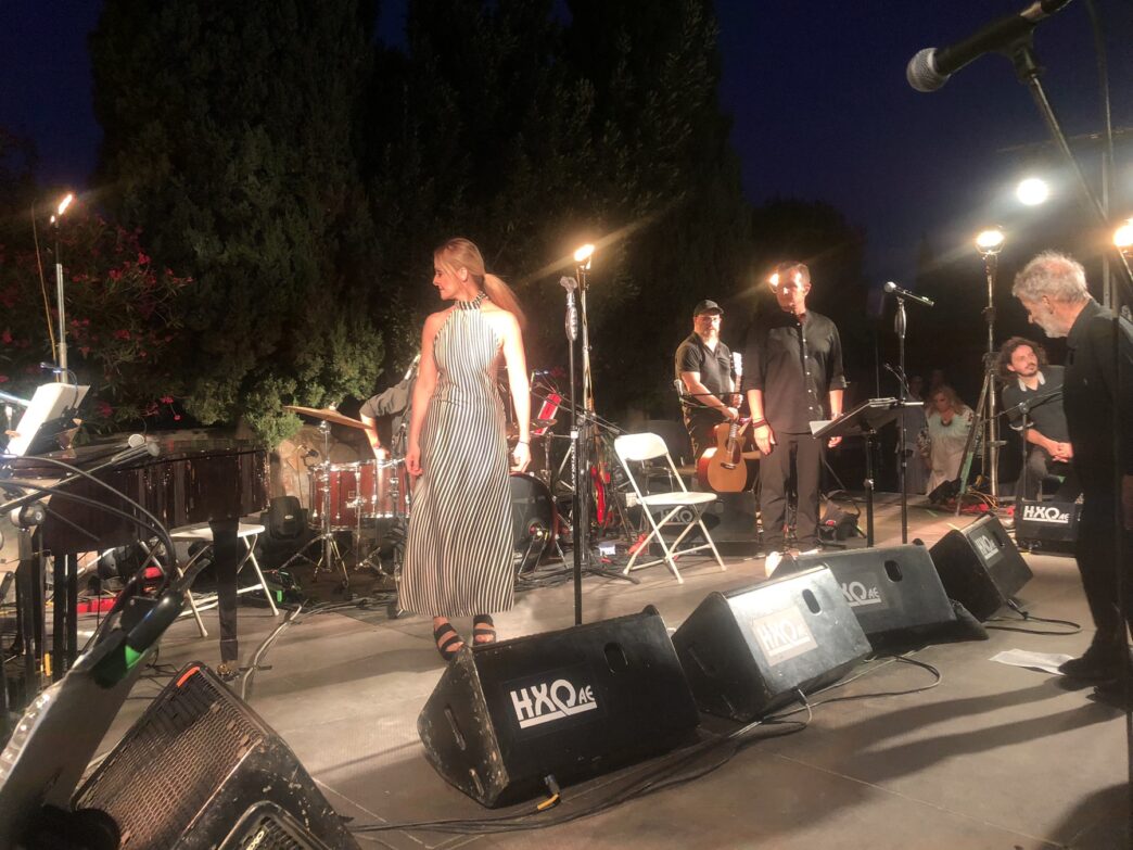 Στο κατάμεστο από κόσμο Μουσείο Βρανά στην πατρίδα του Ελύτη τη Γέρα όλα είναι έτοιμα για να ξεκινήσει σε λίγο η συναυλία του Σταύρου Ξαρχάκου με την οποία γίνεται η έναρξη του δεύτερου φεστιβάλ τις Σαπφούς που διοργανώνει και φέτος η Περιφέρεια Βορείου Αιγαίου.
