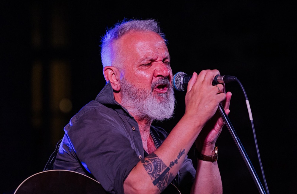Στο πλευρό του, ο Παναγιώτης Μάργαρης με τη μοναδική του δεξιοτεχνία στην κιθάρα, ανέδειξε μέσα από τις λεπτοδουλεμένες διασκευές του το βάθος και την ευαισθησία κάθε μελωδίας. Η συμβολή του δεν ήταν απλώς συνοδευτική· ήταν ουσιαστική, καθώς μέσα από τις χορδές του δημιουργήθηκαν παράλληλες αφηγήσεις, μικρές ηχητικές ιστορίες που λειτούργησαν σαν σχόλια στην ερμηνευτική διαδρομή του Θηβαίου. Η αλληλεπίδραση των καλλιτεχνών με το κοινό υπήρξε συνεχής και ζωντανή. Σε κάθε τραγούδι, οι θεατές τραγουδούσαν, συμμετείχαν, συγκινούνταν. Σιγοτραγουδούσαν, φώναζαν, χειροκροτούσαν. Η ατμόσφαιρα είχε κάτι από την αυθεντικότητα των παλιών συναυλιών, όπου το κοινό δεν είναι απλός θεατής, αλλά συνδημιουργός της στιγμής.