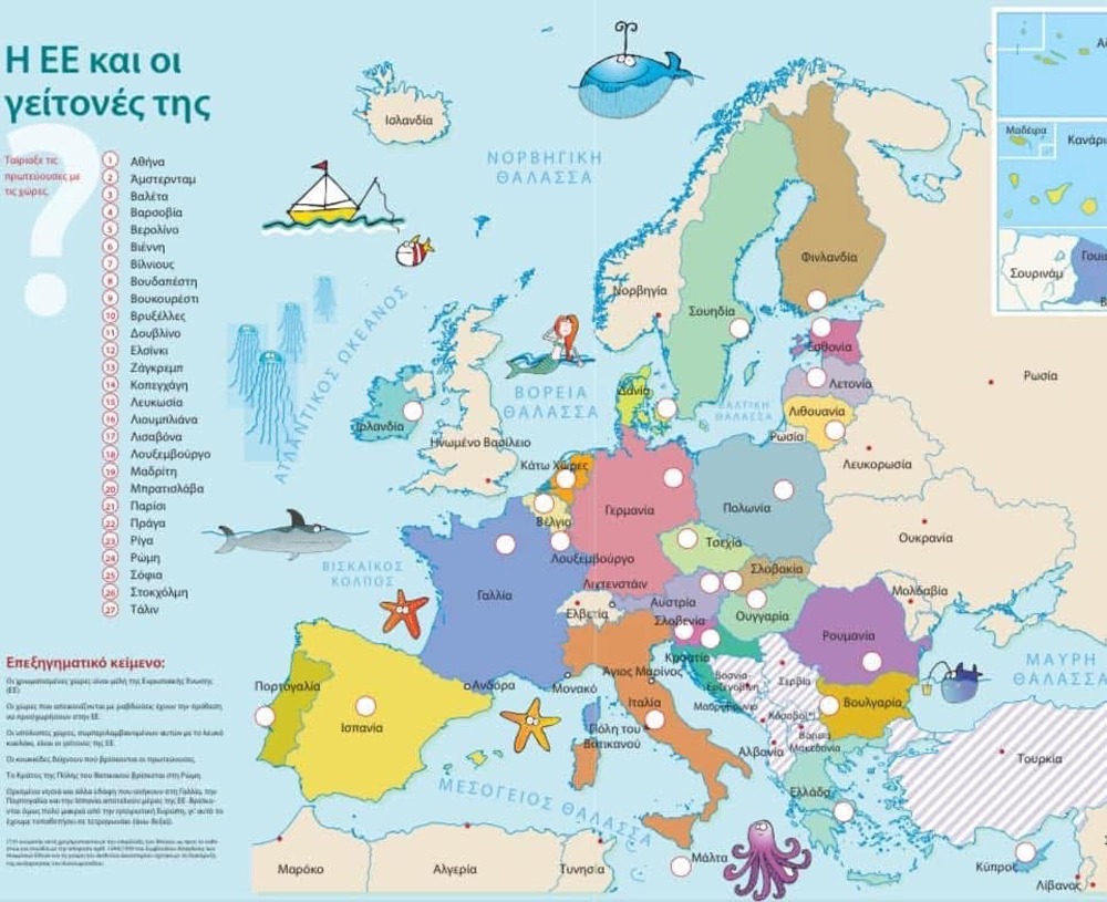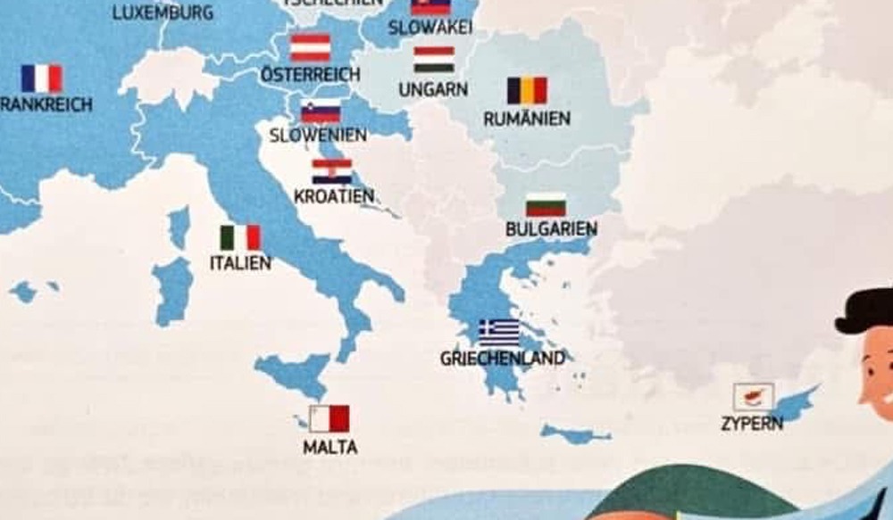 Στην τελευταία έκδοση (Δεκεμβρίου 2024) του «Ανακαλύπτοντας την Ευρώπη», που διανέμεται κατά δεκάδες χιλιάδες αντίτυπα σε όλον τον κόσμο, όλα τα νησιά του ανατολικού Αιγαίου και τα Δωδεκάνησα, αντί για το χρώμα της Ελλάδας, απεικονίζονται με το χρώμα της Τουρκίας!!! (χάρτης 1, ISBN 978-92-68-19677-9).