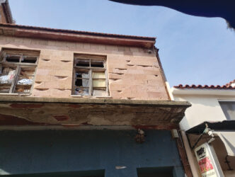 Είναι  σπάνιο φαινόμενο από ένα πετρόχτιστο κτίριο να σπάνε οι πέτρες και να πέφτουν τμήματά τους στο δρόμο, καθώς δεν πρόκειται για σοβάδες. Το κτίριο είναι μισθωμένο από επαγγελματία της αγοράς, ο οποίος το χρησιμοποιεί για αποθήκη, ωστόσο δεν γίνεται κάτι για την εξυγίανση αυτής της κατάστασης που εγκυμονεί πολύ σοβαρούς κινδύνους και οι καταστηματάρχες, βλέποντας τον κίνδυνο πάνω από τα κεφάλια τους απευθύνουν έκκληση προς το Δήμαρχο Μυτιλήνης, Παναγιώτη Χριστόφα, μέσω της Πολεοδομίας, να δώσουν άμεσα λύση (με αφορμή την παρέμβαση που έκανε ο ίδιος μετά το πρόσφατο ρεπορτάζ μας για τ’ Ακλειδιού).