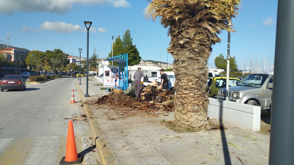 Σε κάθε περίπτωση ο υπεργολάβος που έκανε την καρατόμηση – μας έκανε εντύπωση παρακολουθώντας – έβαλε υπάλληλο και καθάρισε με ειδικό φυσητήρα όλα τα σταθμευμένα αυτοκίνητα, και απ’ τη σκόνη που βγήκε κατά την καρατόμηση του δέντρου, με το ροκανίδι που έπεσε φάνηκε ότι κάνει σοβαρή δουλειά γιατί είναι τοπική επιχείρηση και όχι ξενόφερτη, όπως αυτές στις οποίες συνηθίζουν να δίνουν έργα από την Αυτοδιοίκηση.