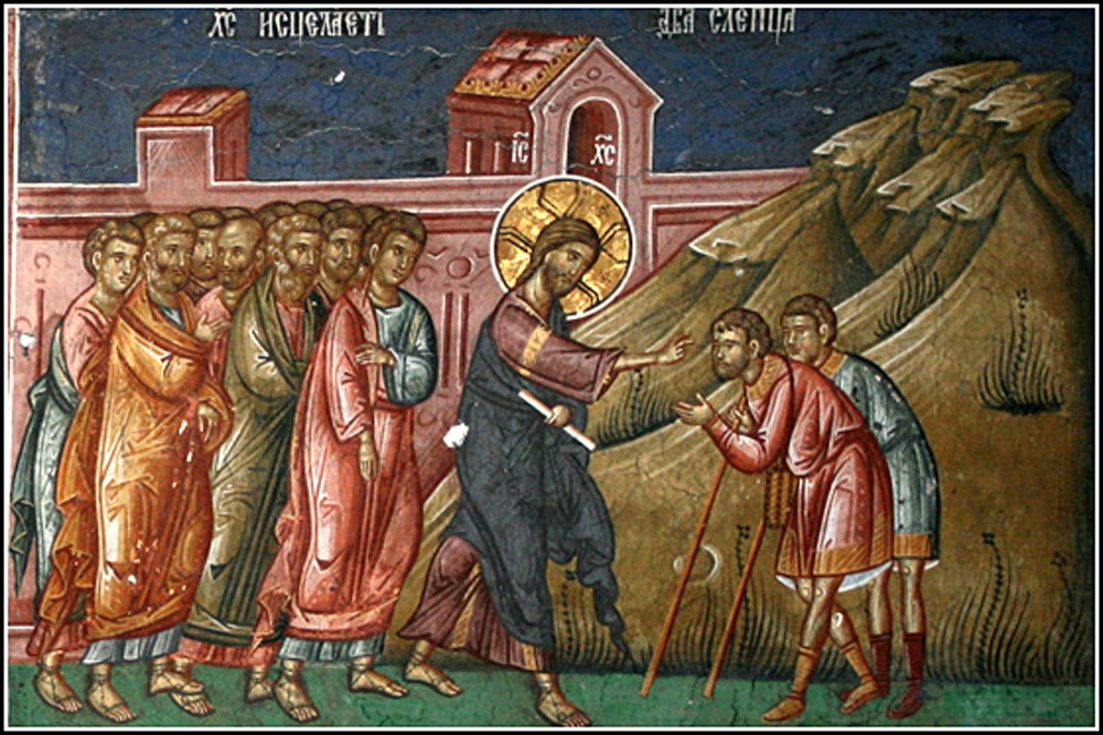 Στο ευαγγέλιο της Κυριακής (Μτ. θ΄ 27-35) ο Χριστός θεραπεύει δύο τυφλούς που με πίστη το ζητήσανε. Στη συνέχεια, μέσα ακριβώς απ’ αυτόν τον πλούτο της αγάπης Του, θεραπεύει και έναν κωφό δαιμονιζόμενο. Ο λαός, συγκλονισμένος απ’ αυτές τις πράξεις του Χριστού, έλεγε: «Κανένας άλλος άνθρωπος δεν υπήρξε που να έκανε τέτοια θαυμαστά πράγματα». Το λογικό και αυτό που, ίσως, θα περιμέναμε όλοι, ήταν ν’ «ανοίξουν τις καρδιές τους» και να Τον προσκυνήσουν. Κι, όμως, δεν συνέβη αυτό. Ήρθαν οι Φαρισαίοι, ως αμφισβητίες, και κατόρθωσαν και βρήκαν ένα λόγο ώστε να απορρίψουν τον Κύριο. Είπαν πως όλα αυτά τα πραγματώνει με τη βοήθεια του άρχοντα του δαιμονίων.