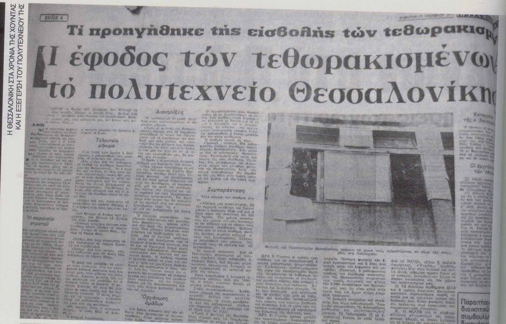 Και όταν το πρωί στις 6, που κοιμόταν η πόλη ΒΓΗΚΑΜΕ, μπροστά στις αναμμένες μηχανές των τανκ, στους παραταγμένους λοκατζήδες, στους γκλομποφόρους, πάνοπλους στρατοχωροφύλακες και στους χύδην σκορπισμένους γύρω ασφαλίτες και τους παρακρατικούς φασίστες με τα παλούκια, νοιώσαμε τον φόβο της ένοπλης, αυθαίρετης και τρομοκρατικής εξουσίας.