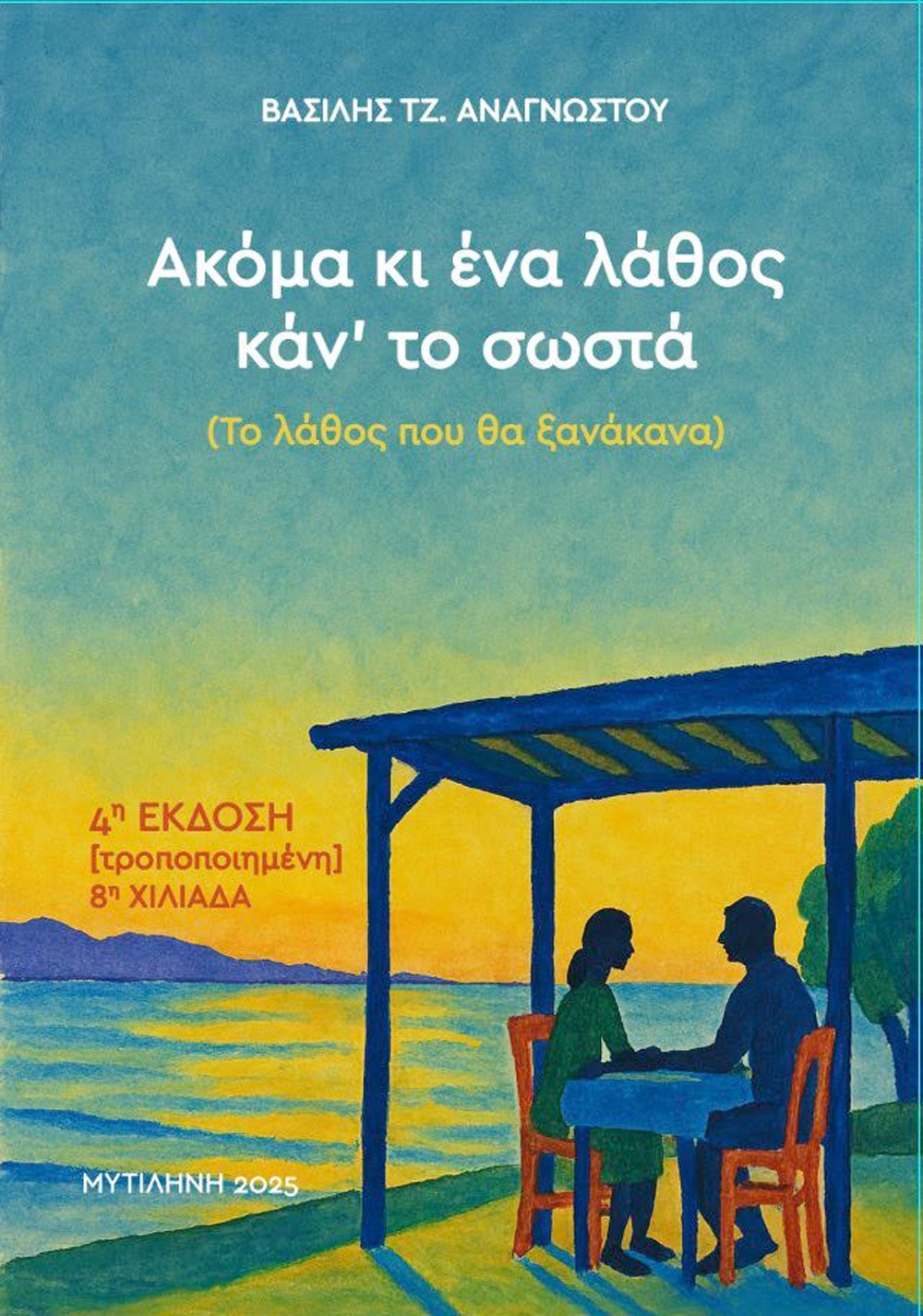 Το μυθιστόρημα «Ακόμα κι ένα λάθος κάν’ το σωστά – Το λάθος που θα ξανάκανα» του συγγραφέα Βασίλη-Τζάνου Αναγνώστου, που επανεκδόθηκε φέτος από τις εκδόσεις Reprographics – Αντωνία Σάββα, στηρίζεται σε μια βαθιά βιωματική ιστορία έρωτα που έζησε ο ίδιος στα νεανικά του χρόνια. Πρόκειται για έναν έρωτα παράφορο και απρόβλεπτο, γεννημένο μέσα στο ασφυκτικό περιβάλλον της ελληνικής επαρχίας της δεκαετίας του 1980. Έναν έρωτα παράνομο, γεμάτο ένταση, που αποτυπώνεται με αφοπλιστική ειλικρίνεια και φέρνει στην επιφάνεια τη δύναμη του πάθους.