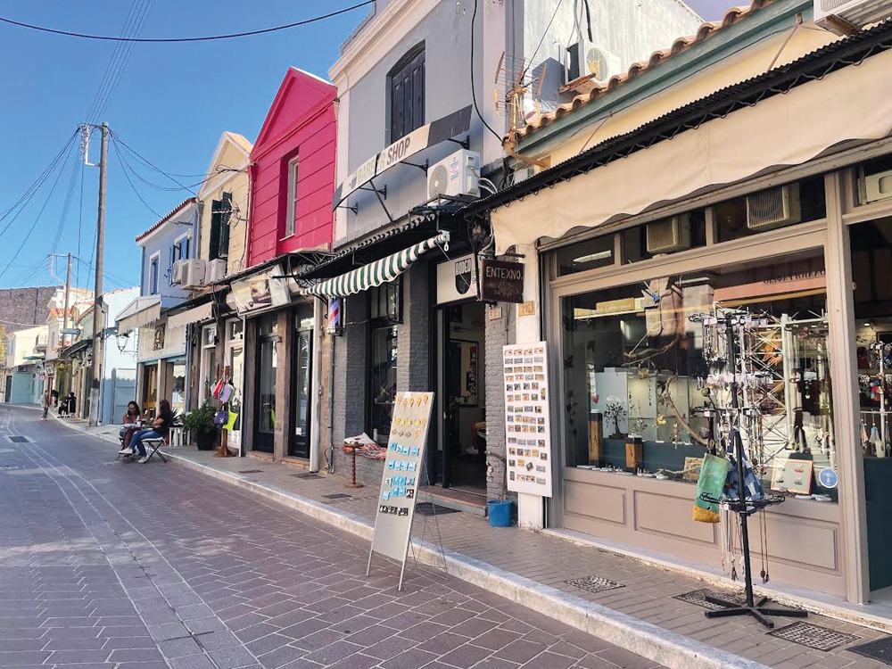 Μαγαζιά με τοπικά προϊόντα που αναδεικνύουν τον πλούτο του νησιού, αλλά και μικρά εργαστήρια χειροτεχνίας που δίνουν χώρο στη δημιουργία, όπως αυτό του Γιώργου Παττέ, ο οποίος με μεράκι και αγάπη για το… ξύλο και την τέχνη του, αποφάσισε πέρα από το εργαστήριό του, να μεταφέρει τις δημιουργίες του σε νέο χώρο ώστε να μπορεί το κοινό να βρίσκει άνετα ό,τι ψάχνει… Δημιουργίες που περιμένουν να διακοσμήσουν κάποιο νέο σπίτι με τον κ. Παναγιώτη – τον πατέρα του Γιώργου – να είναι έτοιμος πάντα να εξυπηρετήσει.