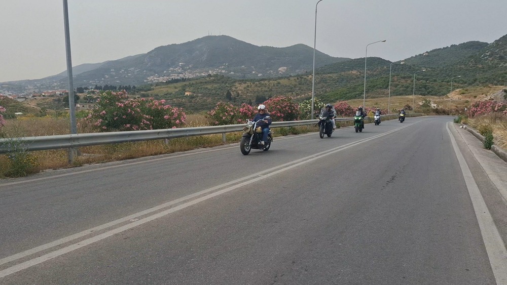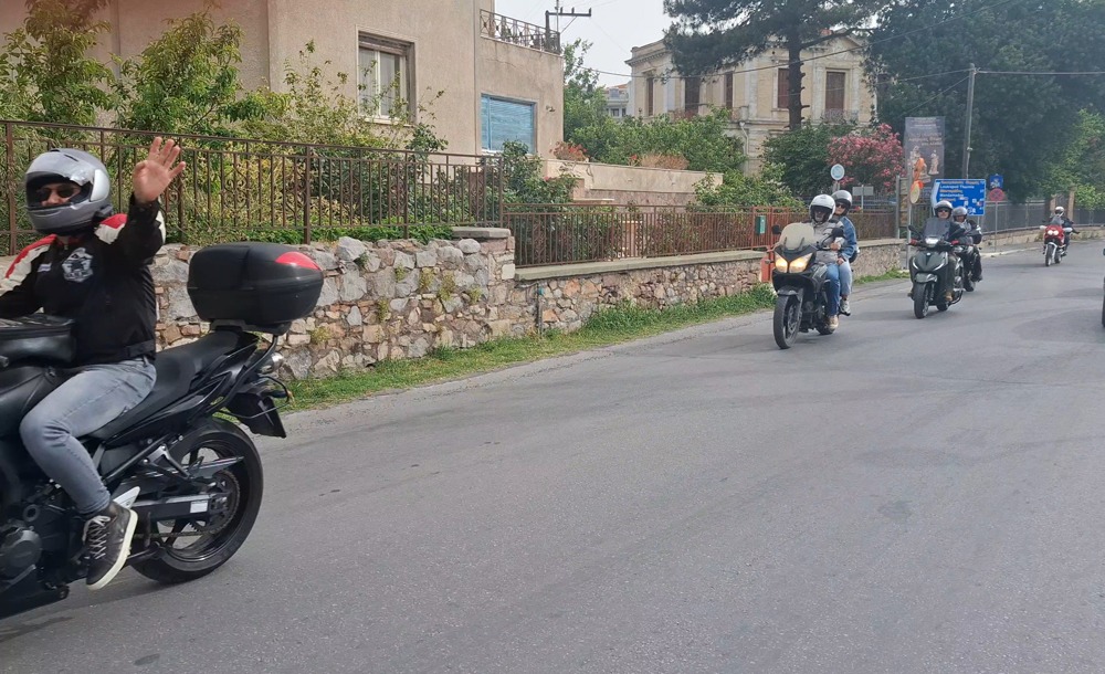 Οι 17 μοτοσικλέτες ξεκίνησαν στις 8:50 από το Άγαλμα και ύστερα, χωρίστηκαν σε 2 ομάδες στην διασταύρωση της Παγανής. Η μία ομάδα είχε αναλάβει να πάρει τους κουμπαράδες από το βόρειο κομμάτι του νησιού και η άλλη από το νότιο.